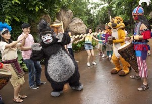 The Summer festivities extend all around the park. On Main Street USA, Stitch has returned for Stitch’s Summer Dance Bash, the very popular show from last year’s event. Also running down Main Street is the splashtacular show, Mickey’s Waterworks Parade. In this show, the parades water pipes spring a leak and water sprays everywhere. Over in Tomorrowland, guests can enjoy the new iCafe, where guests with iPads get a special gift. Also, Buzz Lightyear and his space gals dance along to a DJ in the Tomorrowland Intergalatic Dance Party. Fantasyland has lots of sand sculptures, beach balls, and music at the Fantasyland Play Party. Adventureland’s special attraction is the Adventureland Oasis Party where Turf (Tarzan) and Timon (Lion King) dance to the rhythms of the jungle. At night the stage is used for Jungle Rhtyhms, with flame breathers, and lots of other fire effects.