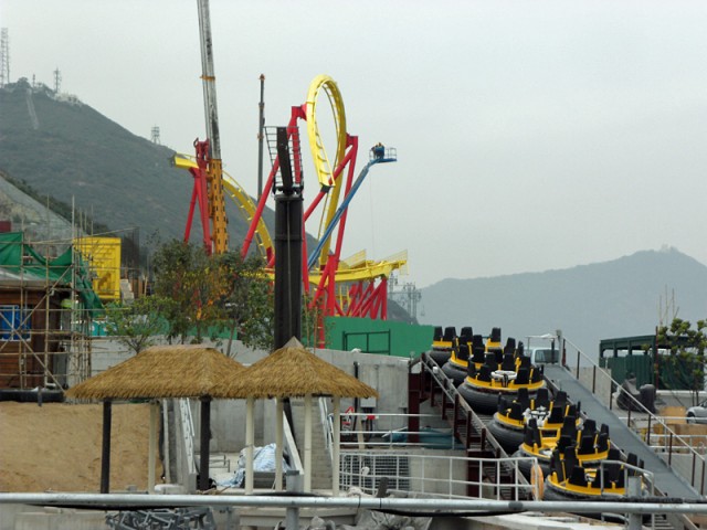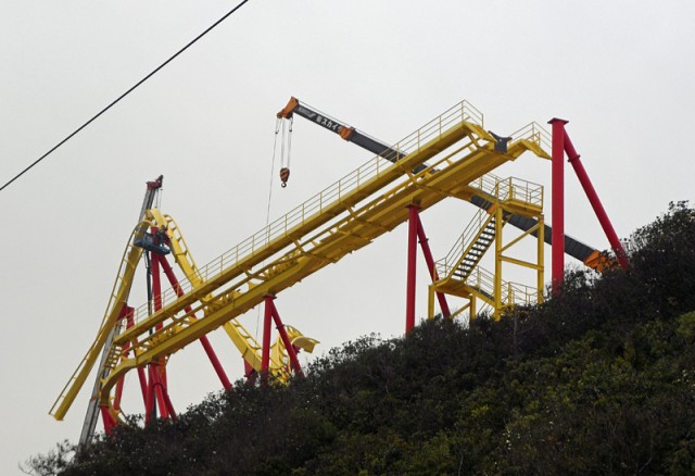 The mysterious B&M track that was found at the Bolliger and Mabillard plant in Ohio over a year ago has found it’s home in Ocean Park at Hong Kong, China. The coaster is rumored to be a Stand Up style ride however it may also be floorless or sit down. The coaster is part of the park’s multi million dollar expansion and is sure to include spectacular views. Here are the first pictures of the coaster so far.